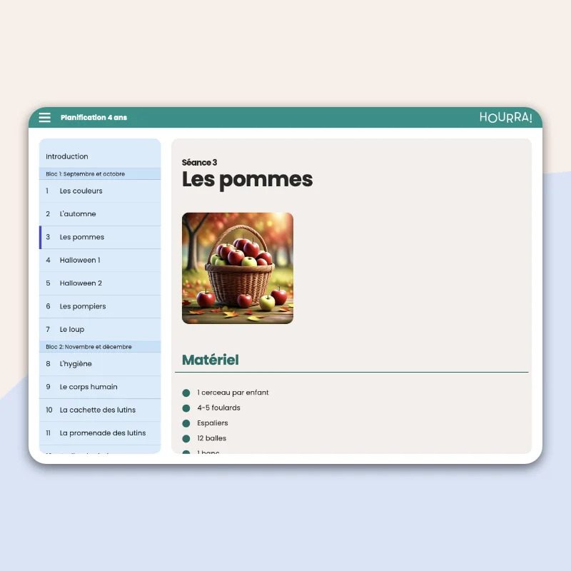 Cette planification numérique propose 36 séances de jeux en gymnase avec la clientèle du préscolaire 4 ans. Elle est en lien direct avec la formation en ligne sur le sujet et respecte une progression selon le développement moteur des enfants de cet âge. Cette planification est offerte gratuitement avec l'achat de la formation en ligne.