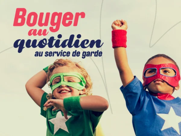 Bouger au quotidien au service de garde propose, sous forme de livre de recettes, des idées de jeux avec des variantes multiâges pour le matin et le soir, des jeux niveau préscolaire en petit local pour le dîner ainsi que des retours au calme et des jeux d’antan.