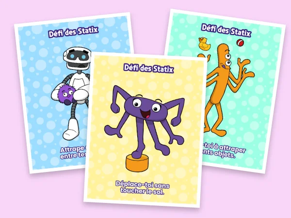 5 affiches de défis proposés par les Statix. Les affiches peuvent être posées sur les clôtures pour inspirer les jeunes.